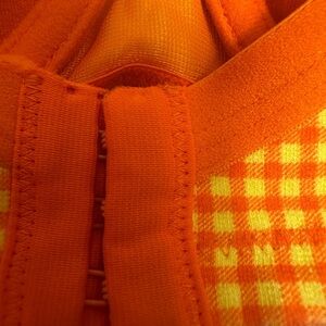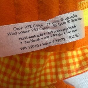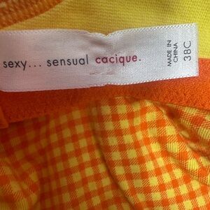 Cacique bra. Orange and yellow gingham. Underwire. Adjustable strap. Cotton and Lycra. Excellent preowned condition. Size 38C.