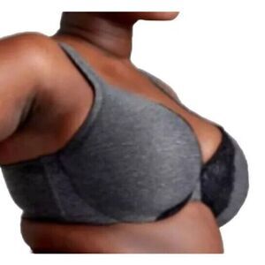 Cacique Lightly Lined Full Coverage Bra Underwire Heathered Black Lace Size 38F