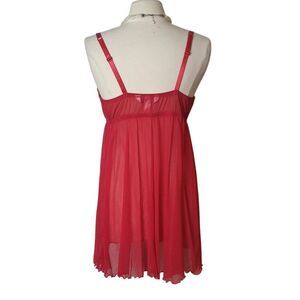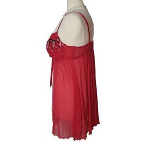 Cacique Sheer Red Babydoll 18/20 Lingerie Floral Embroidery Satin Bow Chic