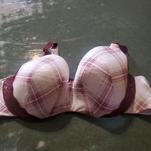 Cacique red&white plaid bra size 44D in good used condition with some piling and wear as shown in the pictures.