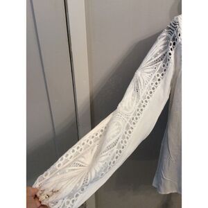 Cactus And Pearl Medium White Pleated Tunic Top Ruffled Lace Sleeves Bib Collar