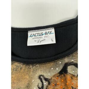 Cactus Bay “Happy Halloween” AOP Tee Large Spooky, Pumpkin, Ghosts, Embellished