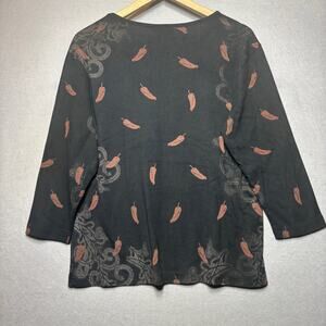 Cactus Bay Red Chili Pepper Shirt XXL Long Sleeve Rhinestone Boho Western Chic