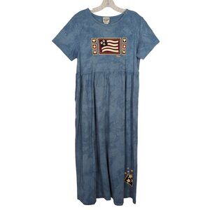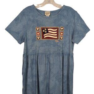 Cactus Bay Vintage light tie dye blue Maxi Dress Patriotic Flag Print Tie Back M