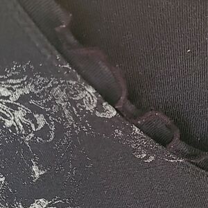 V Neck is ruffle edged as are the sleeve and shirt hemlines.