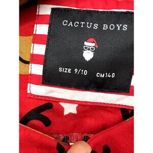 Cactus Boys Red Reindeer Roll Tab Button Down Shirt 9/10 NWT