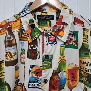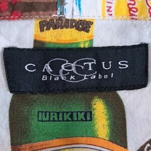Cactus Hawaiian Camp Shirt Mens L Beer Print Short Sleeve Button Up Resort Party