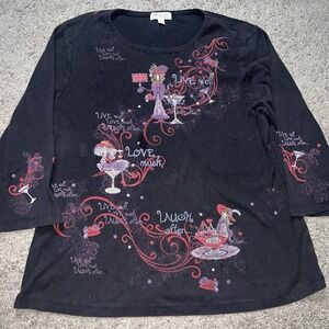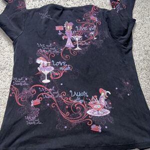 Cactus Made in USA Live Laugh Love 3/4-Sleeve Cotton Top Medium Ed Hardy Style