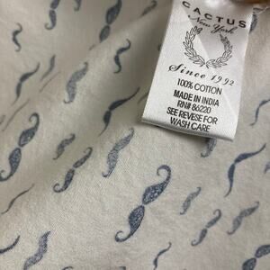 Cactus Man Button Shirt Mens L Slim Fit Short Sleeve White Blue Mustache Styles Types Cotton Handlebar French Moustache Facial Hair Grooming Masculinity Novelty Whimsical Fun Casual Summer Spring Beach Pool Party Cruise Resort Vacation Movember