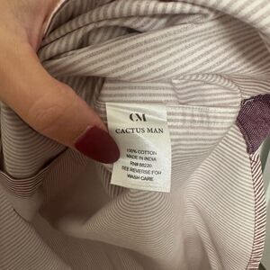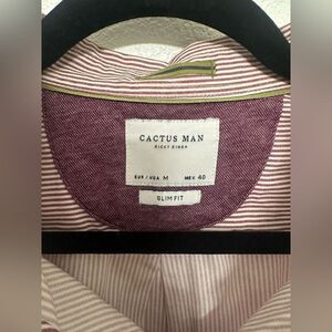Cactus Man Long Sleeve Mens Button Up Shirt, stripes, small imperfection, please see photos