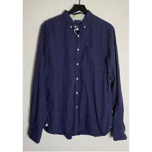 Long sleeve button down shirt from Cactus Man Ricky Singh. Slim fit. Yellow and white print on navy. Size XL. Gently preowned condition with no tears or stains.