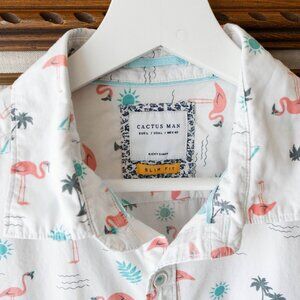 Cactus Man Ricky Singh Men’s Size Large Flamingo Print 100% Cotton Button Up Shirt Casual Slim Fit