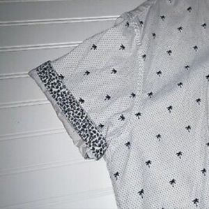 Breathable light cotton fabric and understated but festive palm trees make this shirt a comfortable choice for any casual event. It’s slightly “dressed up." Cuffs and collar are flippable with a whimsical floral pattern.