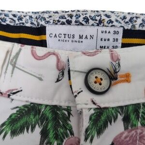Cactus Man Ricky Singh Shorts Mens 30 White Flamingo Palm Tropical Stretch Chino