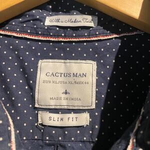 Cactus Man Shirt Size XL Navy White Polka Dot Slim Modern Fit 100% Cotton