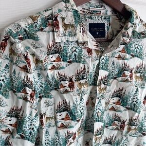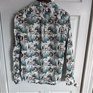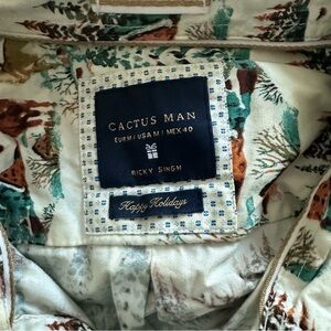 Cactus Man Slim Happy Holiday Button Down Shirt M Top Christmas Cabin Mountain
