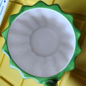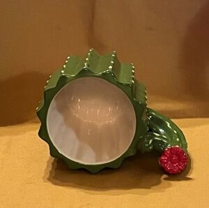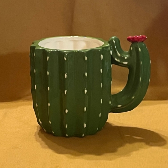 Green cactus beverage mug with red flower on the handle. In perfect condition.