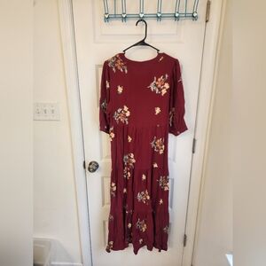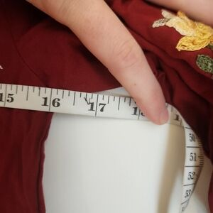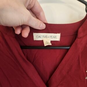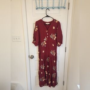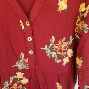 Cactus + Pearl Maxi Short Sleeve Dress Floral Red Embroidered V Neck Size S