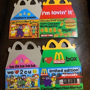 Cactus Plant Flea Market McDonalds Adult Happy Meal Set of 2 BOXES ONLY 2022. Unused boxes, both have a slight crease on the upper green part (see pictures 2 and 4). No figures are included.