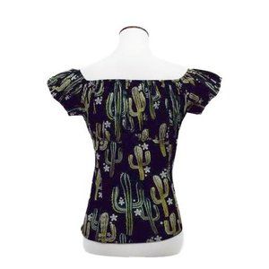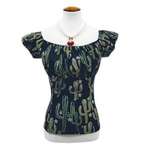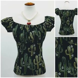 Stylish black top featuring a unique cactus print. Perfect for casual outings.
