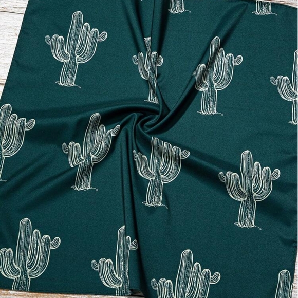 Elevate your style with this chic cactus print scarf. The deep green color adds a touch of elegance to any outfit. Perfect for any season.