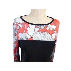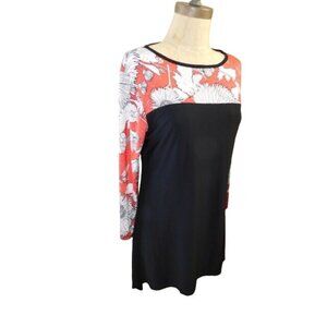 This Cactus Size M Medium Bling Slinky Stretchy Tunic Style Blouse Top is a stylish and comfortable piece for your wardrobe. It is designed with a relaxed fit, stretchy material and glitzy detailing for an eye-catching look. Scoop neckline, 3/4 sleeves, print and solid slinky stretchy fabric with silver riveted accents