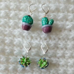 Handmade Set of 4 Succulent and Cactus French Leverback Hook Crochet Knitting Stitch Markers Progress Keepers