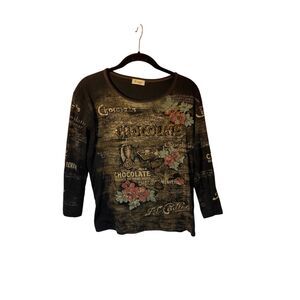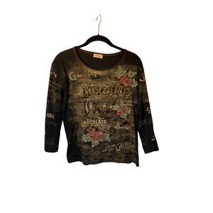 Cactus women’s vintage chocolate embellished T-shirt, size large