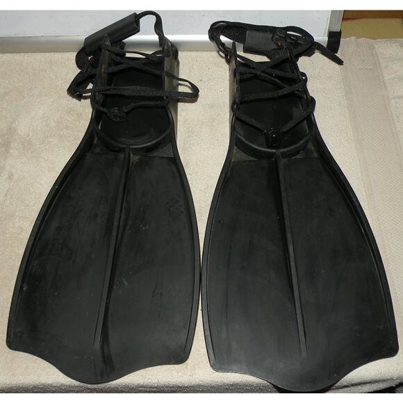 Caddis Fins Float Tube Flippers Adjustable Heel Lace Up Adult Black Snorkeling