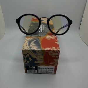 New in Box. Caddis Readers. Model: Gramophone Color: Polished Black. Magnification= 0.0x. Protect your eyes with industry leading blue light technology for viewing your phone, tablet, computer, tv. etc.