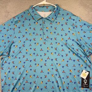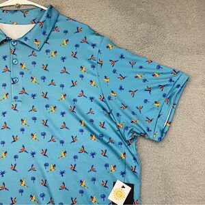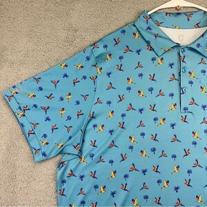 Caddy Cart Golf Polo Mens XL Ocean Blue Macaw Tropical Hawaiian Stretch UPF50