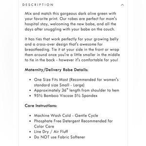 Perfect for delivery and after. Super soft and comfortable. Description in photos. Olive green. One size fits most.
