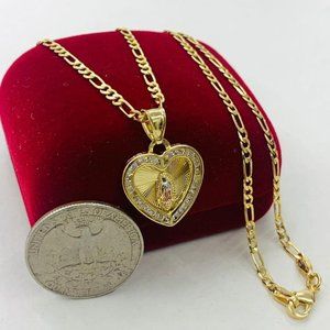 Cadena Tres Oros de la Guadalupe para Mujer 20" Virgen de Guadalupe Necklace GF