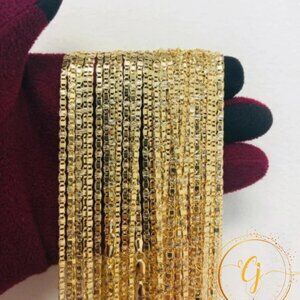 Add a touch of elegance to any outfit with the Valentino 20" 14K Necklace Chain for Men. This finely crafted piece is made from 14K gold-filled material, offering the luxurious look and feel of gold without the high price tag. The Valentino chain design is both stylish and timeless, making it the perfect accessory for any occasion. Ideal as a gift for the modern man, this necklace exudes sophistication and class. Whether for a special occasion or everyday wear, this chain is a statement piece that will elevate any wardrobe.