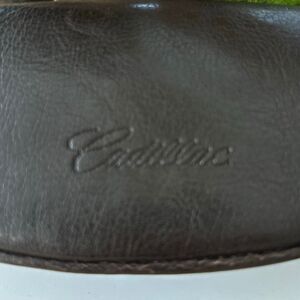 Cadillac brown leather eyeglass sunglass case Very good condition like new Size is 6 x 2 1/2 x 3