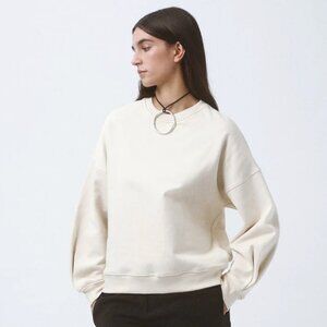 Caes Sweatshirt Ivory Cream White Crewneck Neutral Casual Organic Cotton Pleated