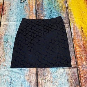 Caesar Exclusif : Made in Italy. Dark Navy jacquard flower print mini pencil skirt. Back zipper. Front side slit. No size / fabric tag . See below for measurements.