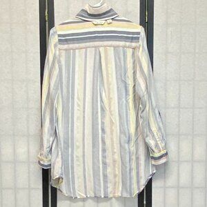 Café Marrakesh Stripe Tunic Shirt M Relaxed Roll Sleeve Button-Up Collared Top