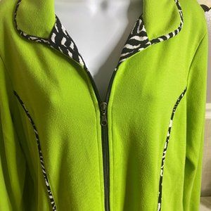 Cafe Au Lait zip front green with zebra print detail jacket size XL