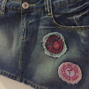 This mini jean skirt is from Cafe Del Mar Store in Ibiza. I just wore it a few times. Very cool with its patchs. Size M.