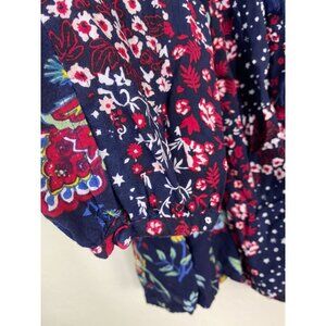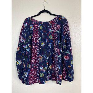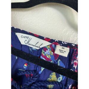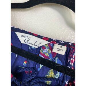 Cafe Marrakesh Floral Boho Peasant Top Blouse Womens Plus Size 3X Blue Pink