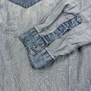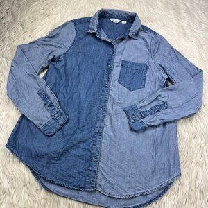 Cafe Marrakesh Two-Toned Button Front Chambray Shirt