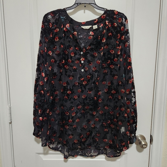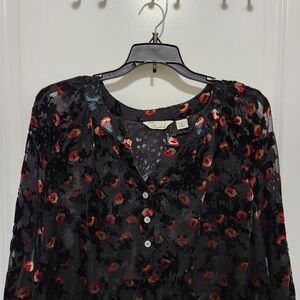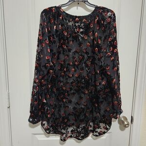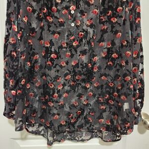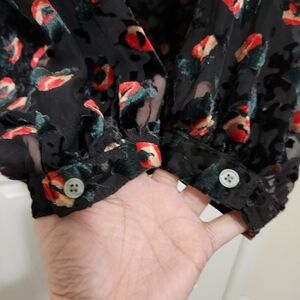 Cafe Marrakesh Women's L Sheer Velvet Burnout Floral Blouse Whimsigoth Feminine
