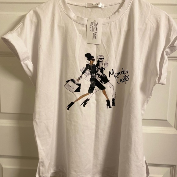 White tee never worn; tag still on it. Cut fit. Specially cut to it.
