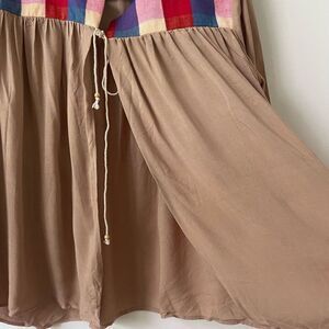 Cafeliz Women's Elbow Sleeve Multicolor Windowpane Brown Open Front Blouse Sz M