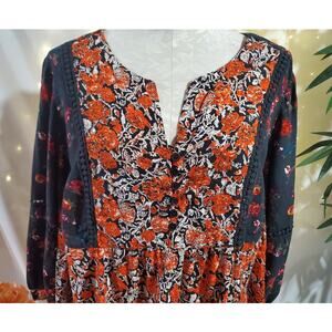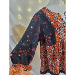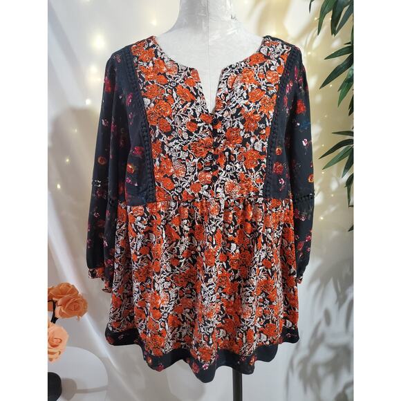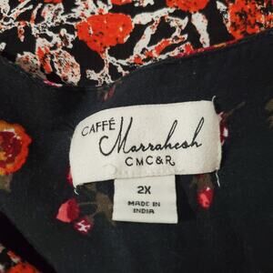 Caffé Marrakesh Floral 3/4 Sleeve Babydoll Boho Blouse Womens Size 2X Hippie Top