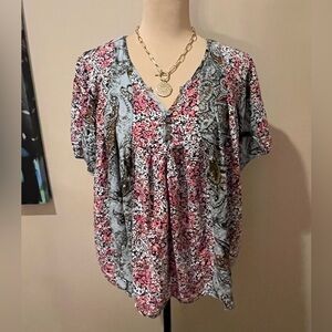 Caffé Marrakesh Floral V-Neck Peasant Blouse, size Medium