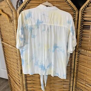 Caffé Marrakesh shirt, tie dye button down, women’s XL rayon top, summer festival blouse, boho tie front shirt, short sleeve collared top