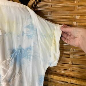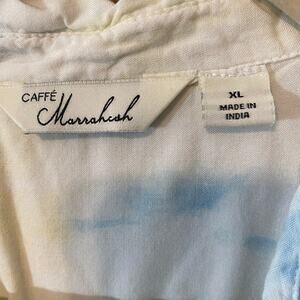 Caffé Marrakesh Tie Dye Button Down Shirt XL Rayon Blue White Short Sleeve