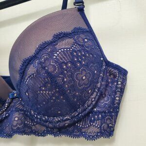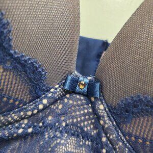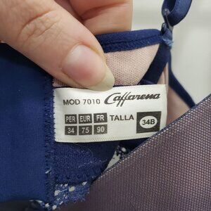 Caffarena Peru #7010 Blue Beige Lace Overlay Push Up Underwire T-Shirt Bra 34B